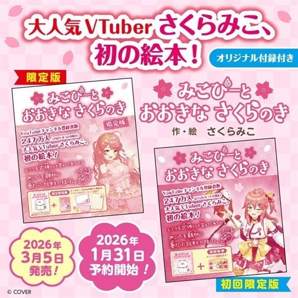 Youtubeチャンネル登録者数247万人(2025年12月現在)大人気Vtuberさくらみこ、初の絵本!【初回限定版】には、オリジナル絵馬(紙製絵馬+紐)が付属します。